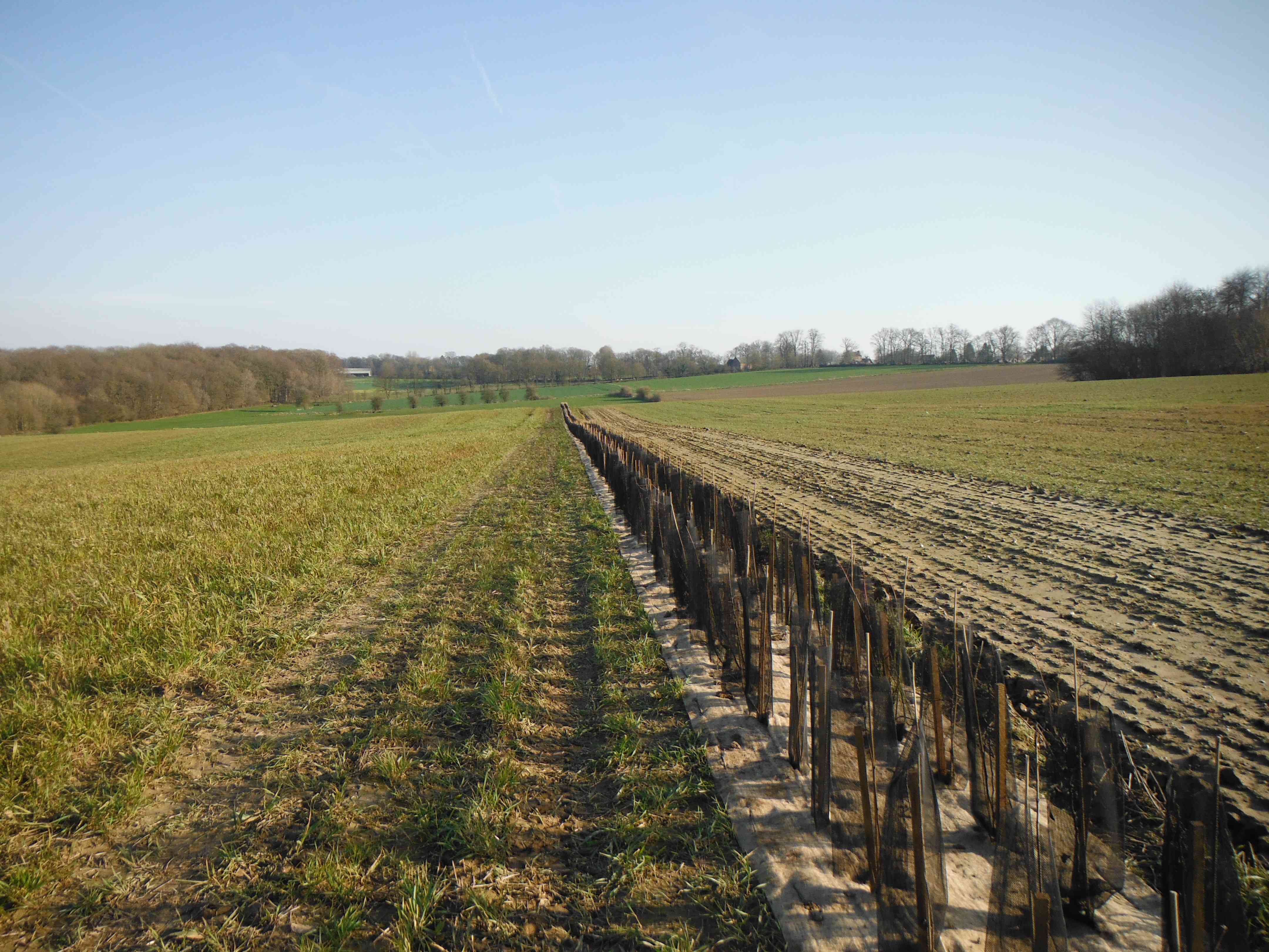 Les aménagements d’hydraulique douce sont des « petits » aménagements qui complètent les ouvrages structurants (digue, bassin d’orage, barrage, …). Leur but est d’intercepter au plus près de la source les ruissellements pour favoriser l’infiltration des eaux et en réduire les volumes et les vitesses. Ils permettent de limiter les transferts de limons au sein du bassin versant de manière générale, mais également de protéger les infrastructures humaines (voirie, habitation, ouvrage tampon, …).