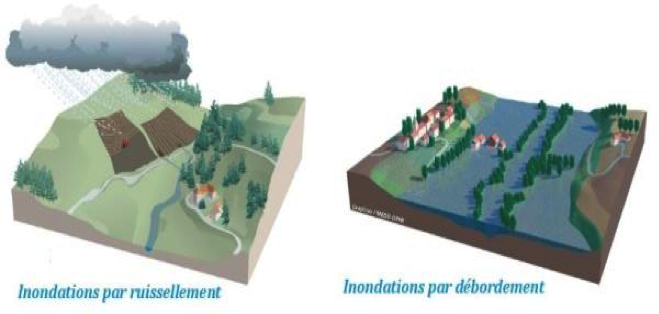 Illustration des différents types d’inondations (source : prim.net et météo France).